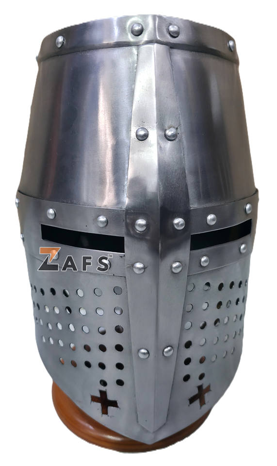 หมวกนักรบเทมพลาร์ยุคกลางทำจากเหล็กกล้าอ่อน งานแฮนด์เมด สวมใส่ได้สำหรับผู้ใหญ่ เหมาะสำหรับคอสเพลย์ การแสดงบทบาทสมมติ และงานอีเว้นท์