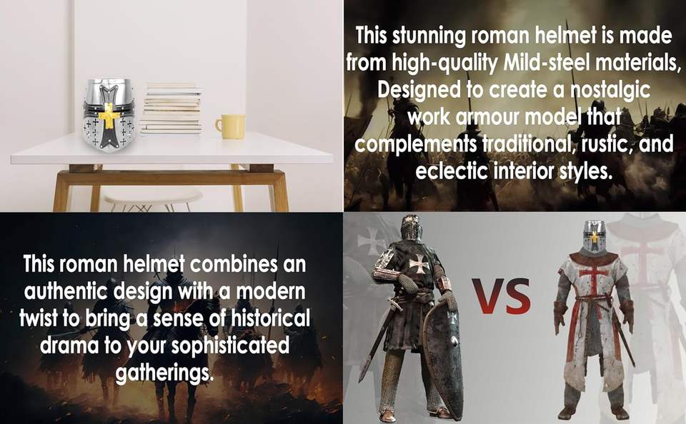 Medieval Templar Crusader Knight Armor Helmet | Greek Roman Spartan Armour Accessories | Silver Gold Helm A+ | Wearable