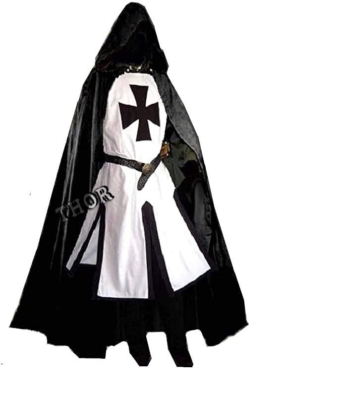 ชุดคอสตูมผ้าฝ้ายสีดำและสีขาวสำหรับการจำลองชุดอัศวินเทมพลาร์ยุคกลางและชุดคลุมครูเสดอร์ SCA