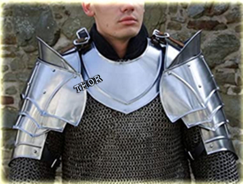 ชุดเกราะเหล็กนักรบเทมพลาร์ยุคกลาง 2 ชิ้น พร้อมแผ่นป้องกันไหล่หนัง