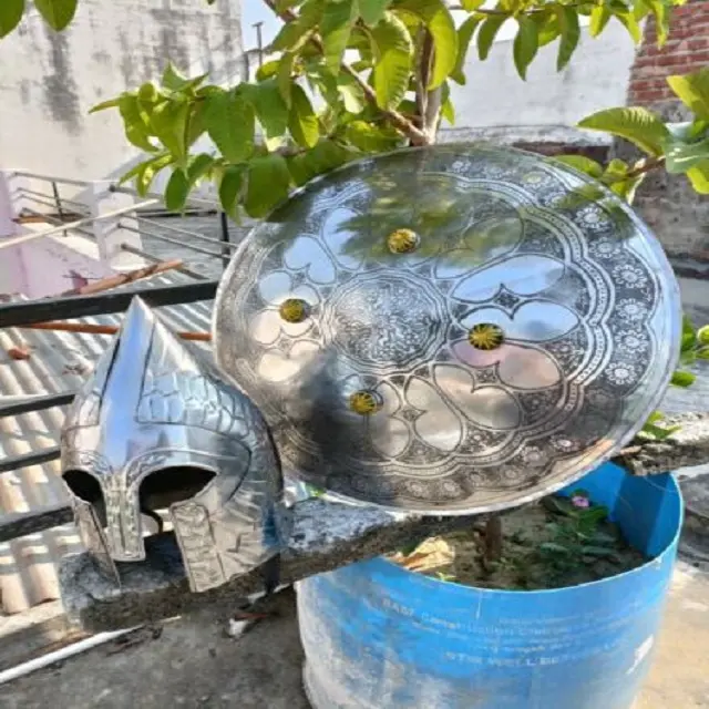 โล่ทองเหลืองสไตล์ไวกิ้งยุคกลาง งานฝีมือสแตนเลสสตีล ของตกแต่งการต่อสู้ของอัศวิน งานพิมพ์ดิจิทัลตามสั่ง งานฝีมือบรอนซ์