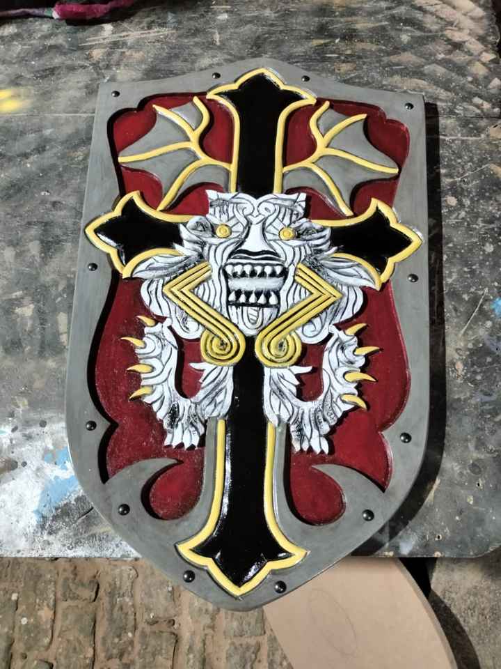 ชุดซามูไรไวกิ้งยุคกลางโล่ใบหน้าสิงโตโล่ตรีศูลวินเทจนักรบโล่อาวุธเสาสำหรับการใช้งานเกมอะนิเมะ