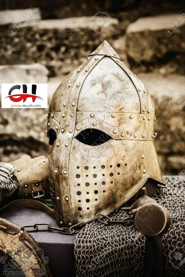 เกราะนักรบยุคกลางที่ยอดเยี่ยมป้องกันการต่อสู้อัศวินหมวกต่อสู้