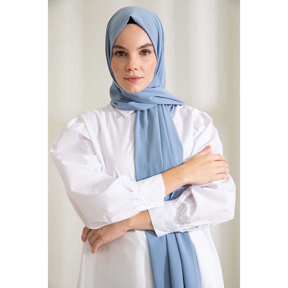 ผ้าพันคอไหมสีฟ้าเบบี้บลูเมดินา ลอง