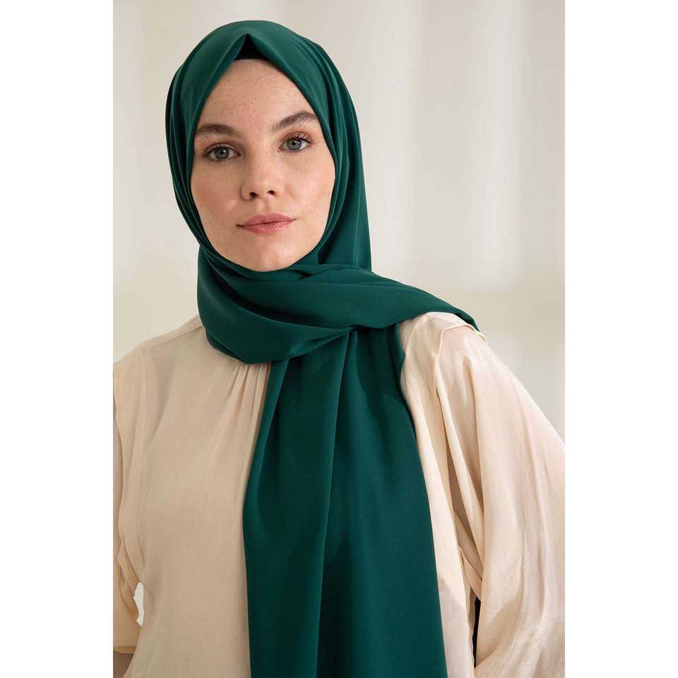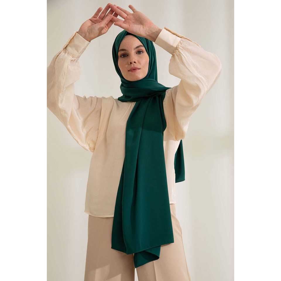 ผ้าคลุมไหล่ไหมพิมพ์ลายเมดินา สีเขียวสน ผ้าซาติน สำหรับชาวมุสลิม ใช้ได้ทั้งฤดูร้อนและฤดูหนาว
