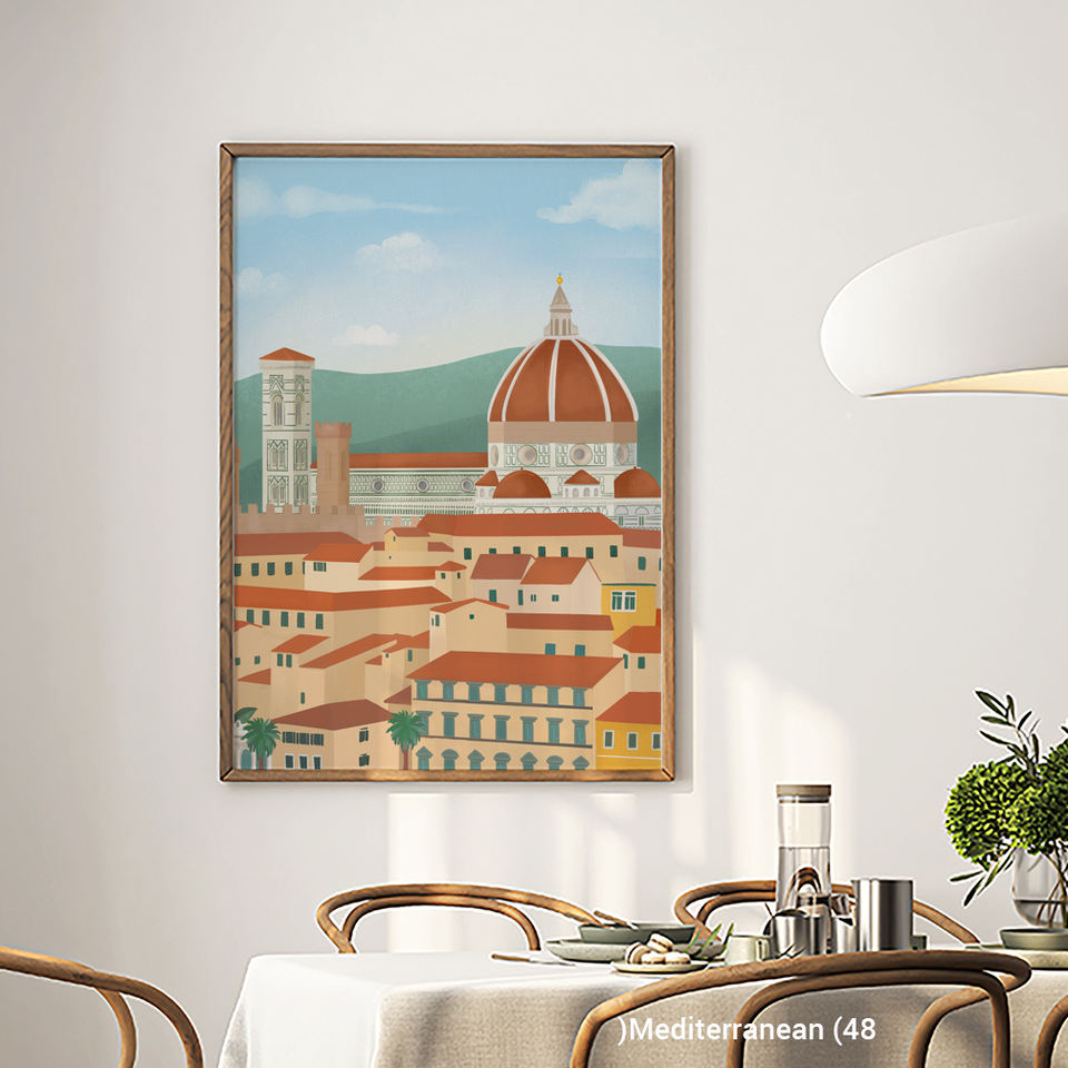 ทิวทัศน์เมดิเตอเรเนียนดูโมทันสมัยสวมใส่สบายศิลปะผ้าใบ HD พร้อมกรอบไม้