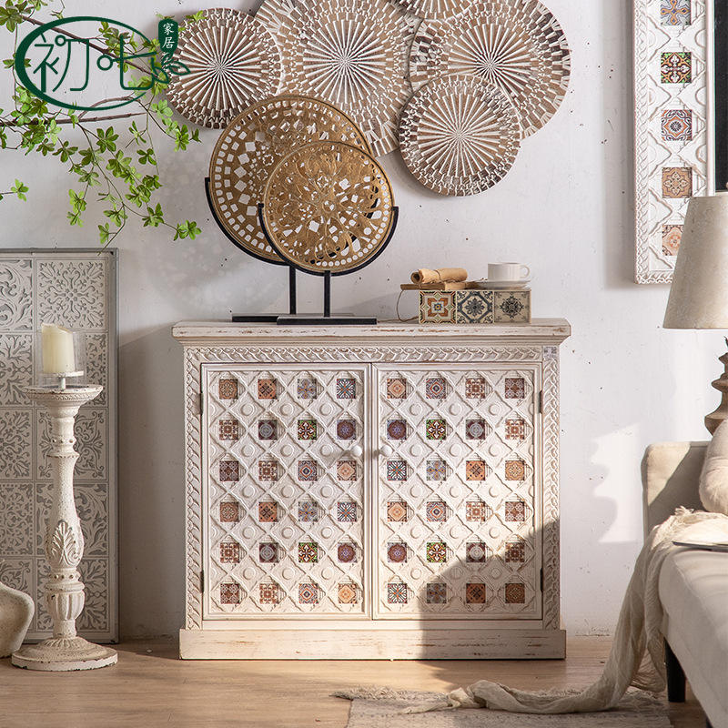 ตู้เก็บของสไตล์เมดิเตอร์เรเนียนแบบโบราณ ทาสี ประตูคู่ 2 ช่อง สำหรับห้องนั่งเล่น ขนาดต่ำกว่า 900 มม.