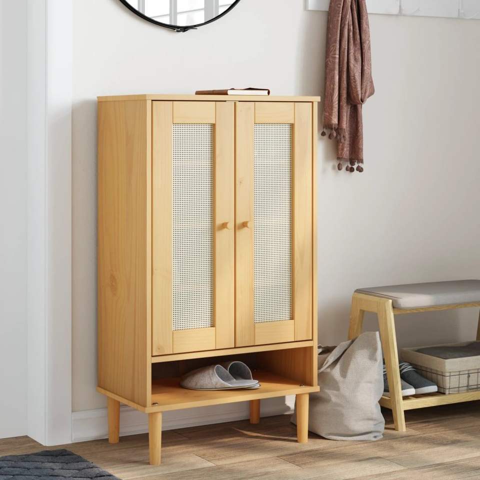ตู้เก็บรองเท้าไม้สนสีน้ำตาลกลางเคลือบเงา UV ดีไซน์หรูหรา