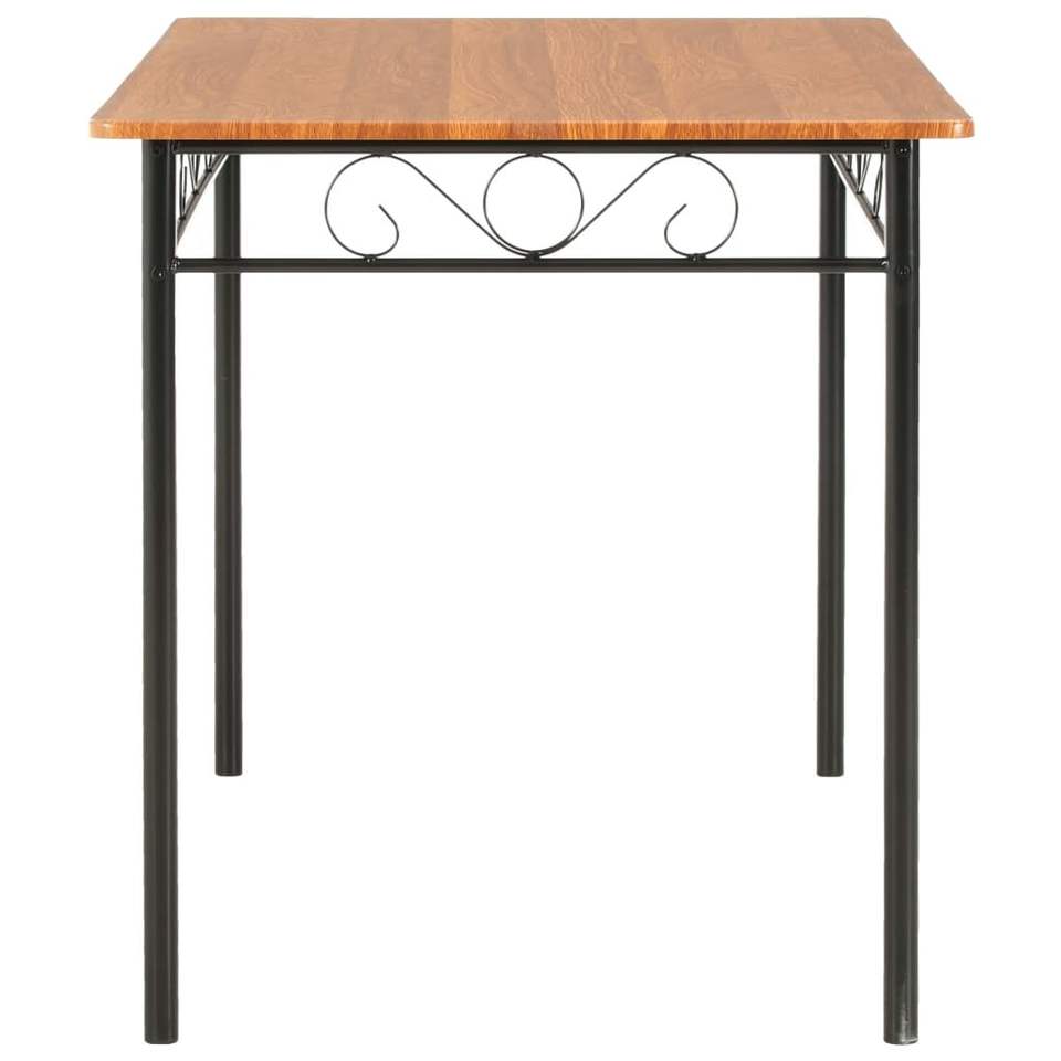 ชุดโต๊ะรับประทานอาหารและเก้าอี้เหล็ก MDF สีน้ำตาลกลางและสีดำ