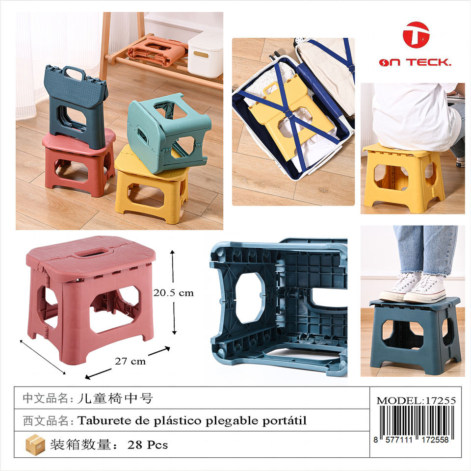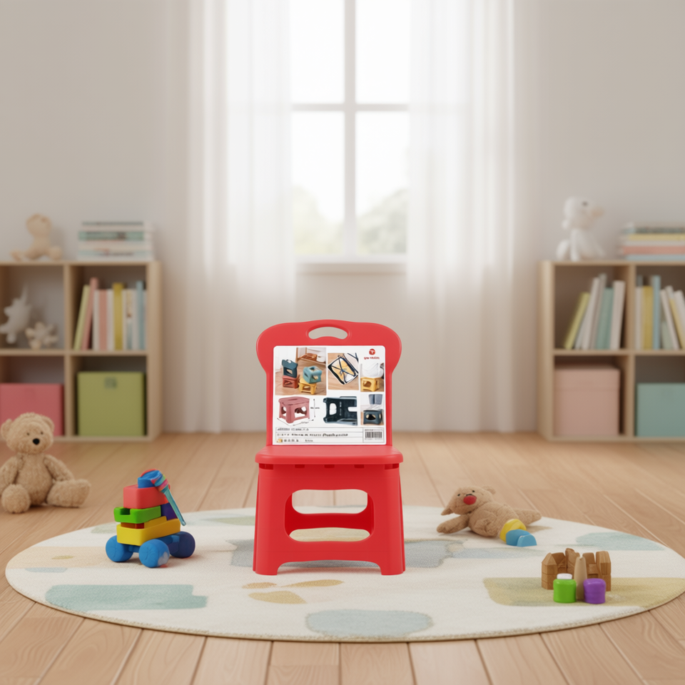 เก้าอี้เด็กออนแทร็คพลาสติกพับได้ดีไซน์ทรงสี่เหลี่ยมสำหรับเฟอร์นิเจอร์เด็กในสถานรับเลี้ยงเด็ก 23x23x28.5 ซม.