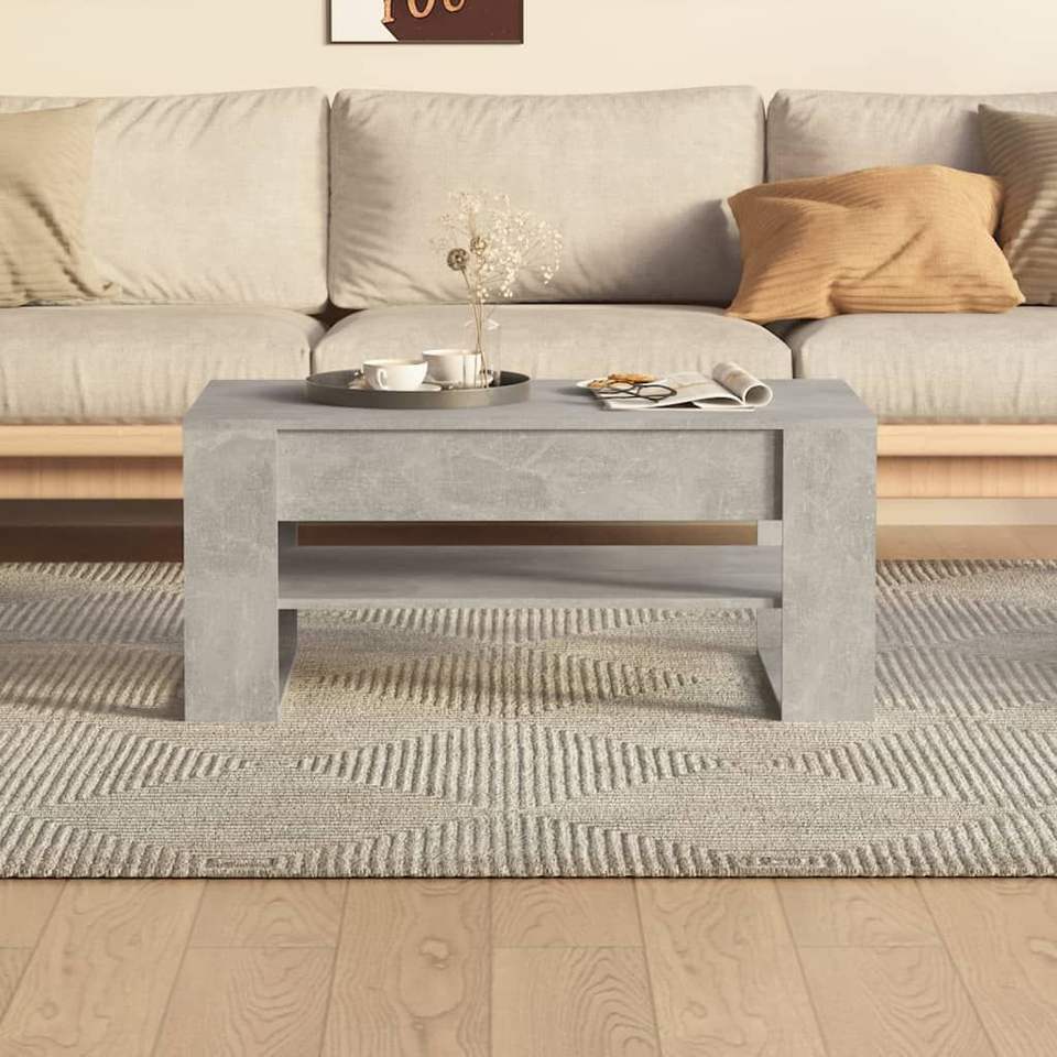 โต๊ะกาแฟสีเทาคอนกรีตขนาดกลาง ดีไซน์ไม้เอ็นจิเนียร์