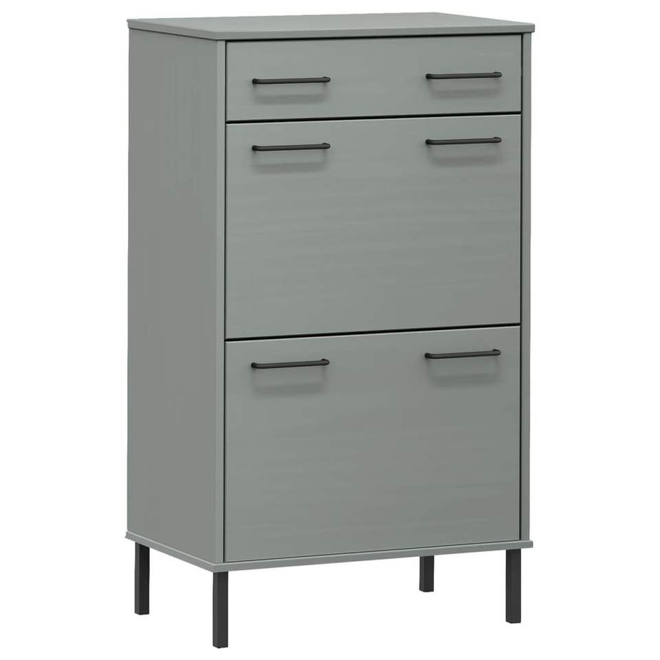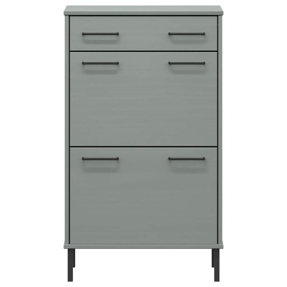 ชั้นวางรองเท้าขนาดกลาง สีเทา ทำจากไม้สนแท้ พร้อมโครงเหล็ก โซลูชั่นจัดระเบียบที่สะดวกสบาย