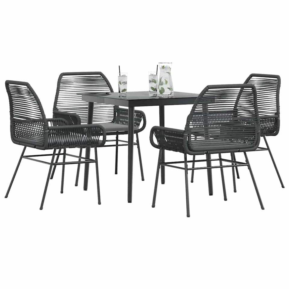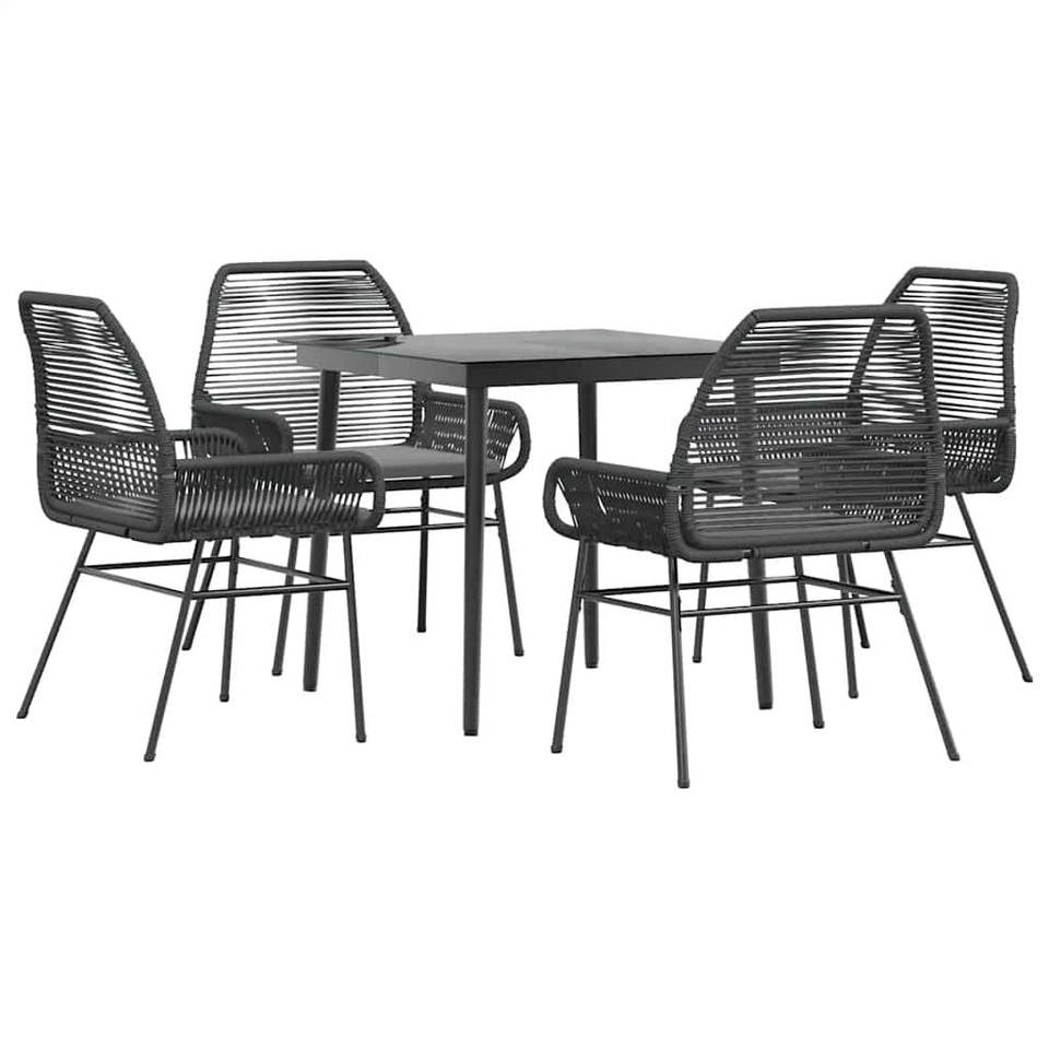 ชุดโต๊ะรับประทานอาหารกลางแจ้งขนาดกลางพร้อมผ้าคลุมถอดได้ทำจากหวายโพลีสีดำ