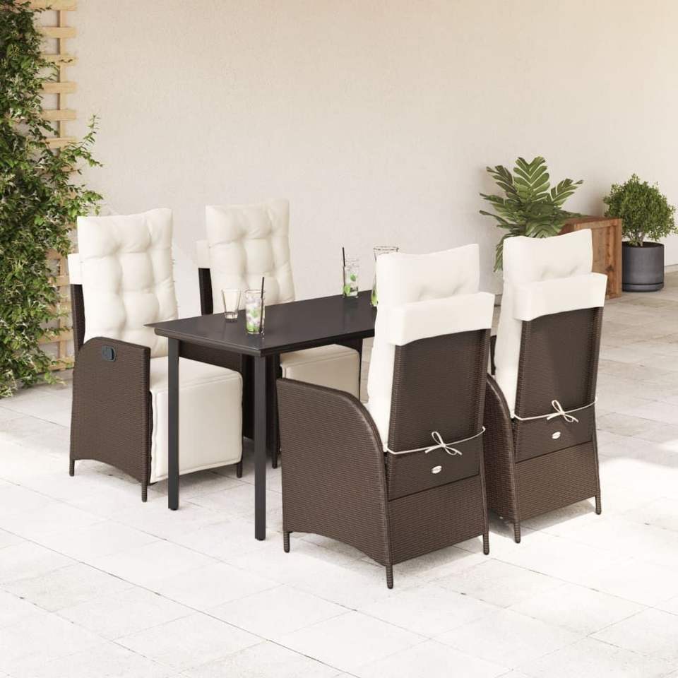 ชุดโต๊ะรับประทานอาหารกลางแจ้งขนาดกลางพร้อมผ้าคลุมหวาย PE สีน้ำตาลแบบถอดได้