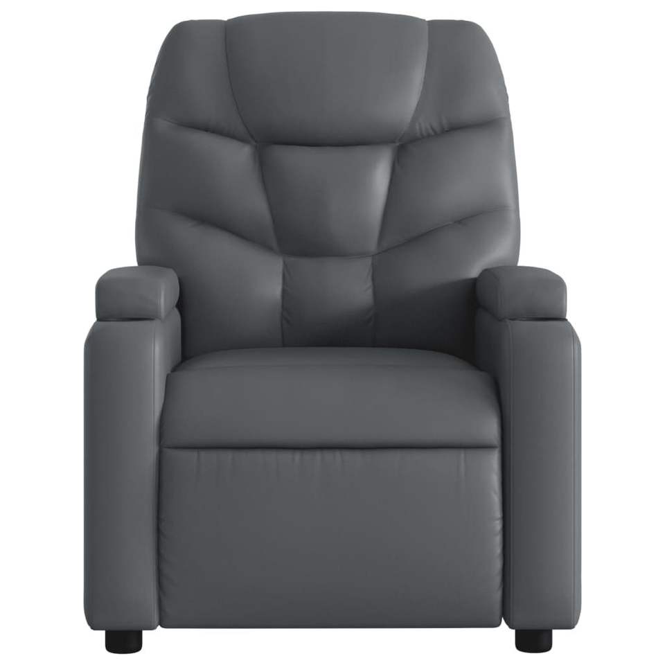 เก้าอี้ปรับเอนหนังเทียมสีเทากลาง โครงโลหะและไม้อัด พร้อมฟังก์ชั่นนวดและดีไซน์ที่สะดวกสบาย