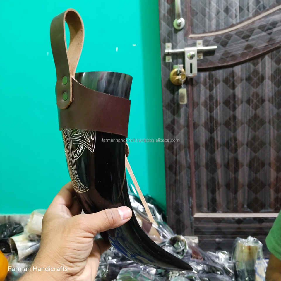 แก้วน้ำวิกิ้งแกะสลักด้วยมือขนาดกลาง พร้อมที่ใส่หนัง ความจุ 500 มล. สไตล์วินเทจ ปลอดภัยสำหรับอาหาร ป้องกันการรั่วซึม ราคาถูก