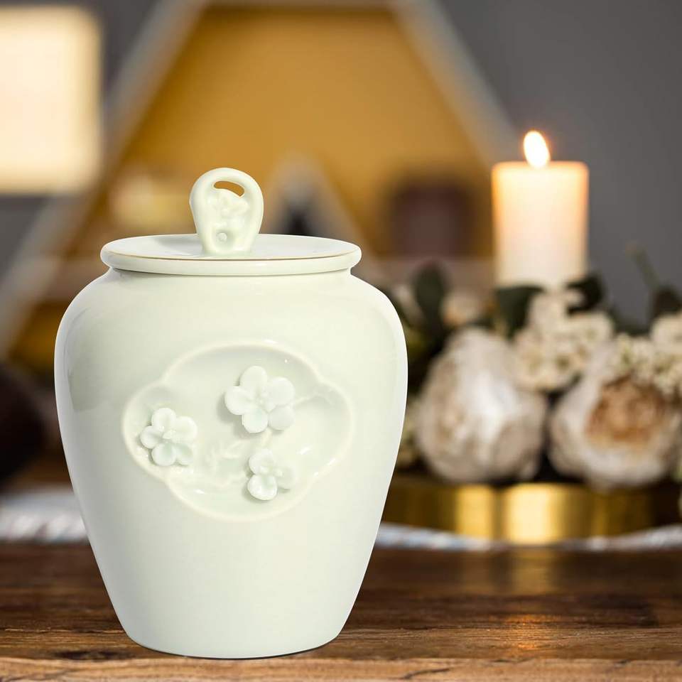 โกศเซรามิกทำด้วยมือขนาดกลางสำหรับขี้เถ้าของมนุษย์เซรามิกขนาดเล็กแกะสลักดอกไม้เซรามิกสวยงามที่ระลึกสำหรับครอบครัวคนที่คุณรักสัตว์เลี้ยง