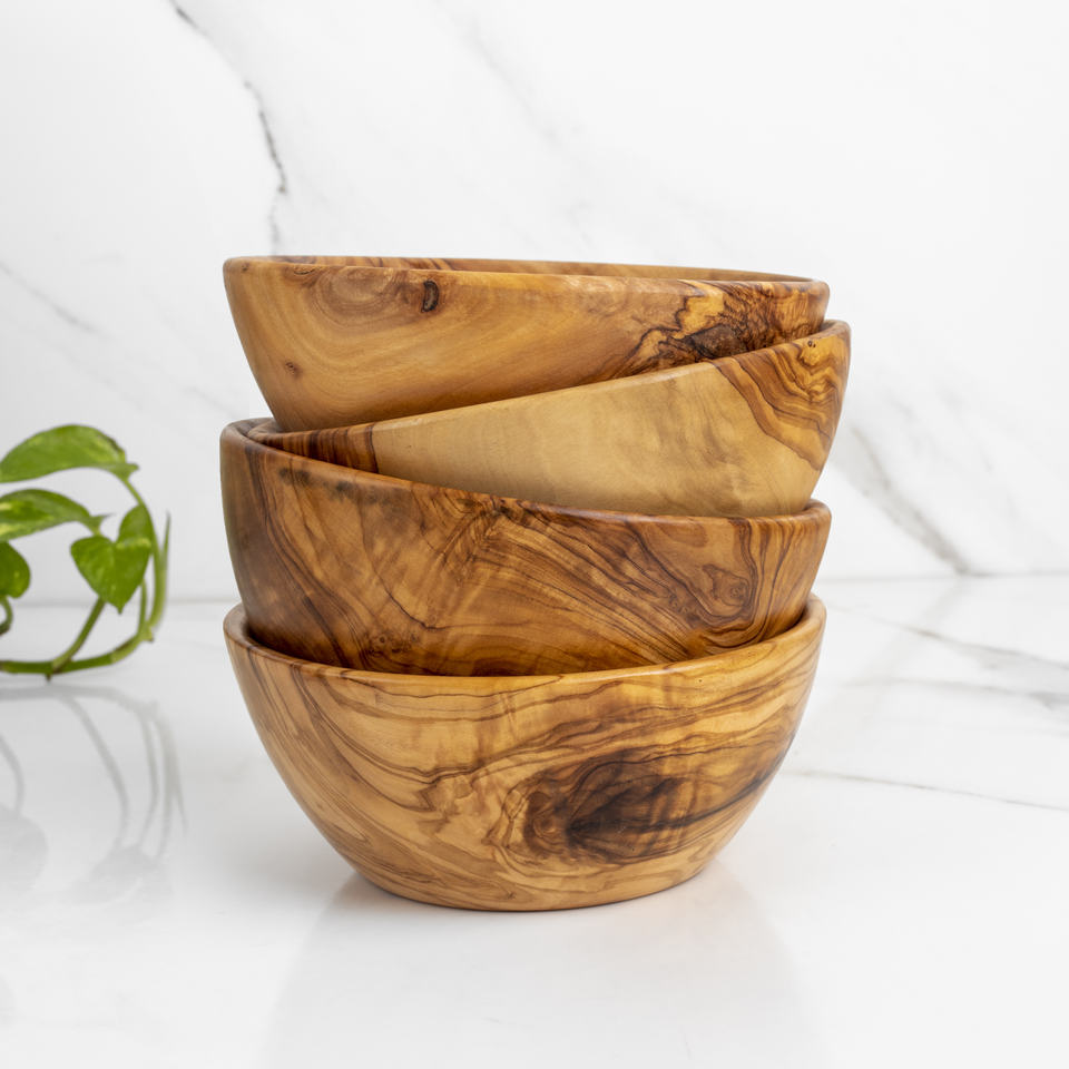 ชามไม้มะกอกทำมือขนาดกลาง เป็นมิตรกับสิ่งแวดล้อม ปลอดสารพิษ สไตล์วินเทจ สำหรับงานปาร์ตี้