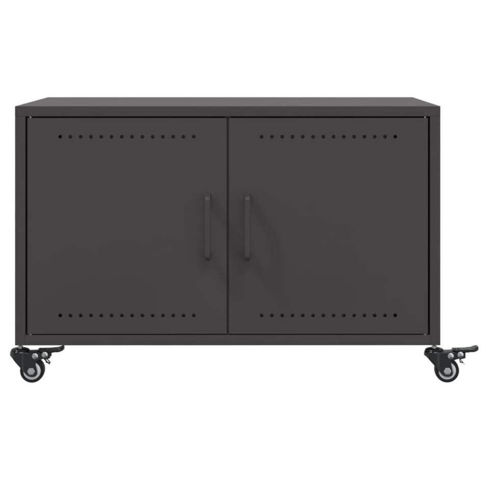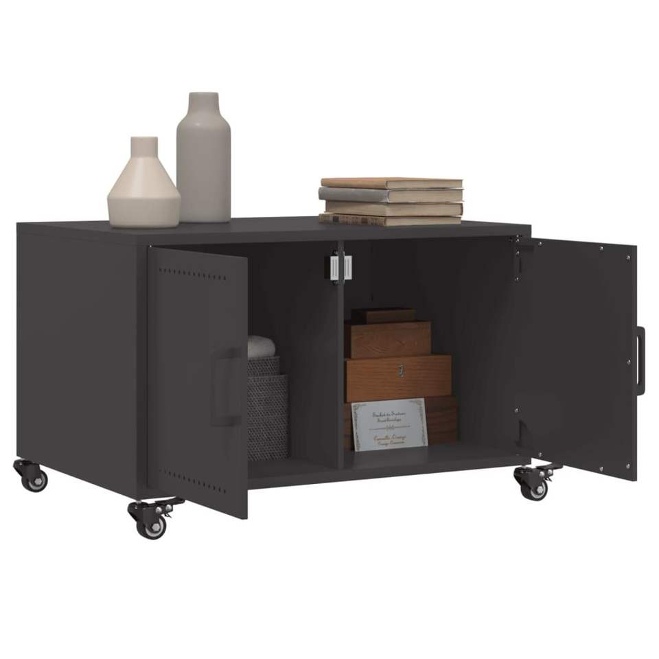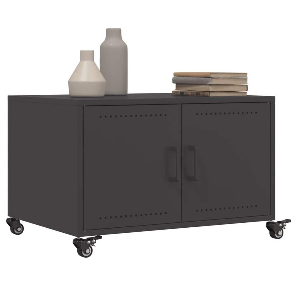 โต๊ะกาแฟเหล็กแผ่นรีดเย็นสีดำ ล้อล็อคได้ขนาดกลาง
