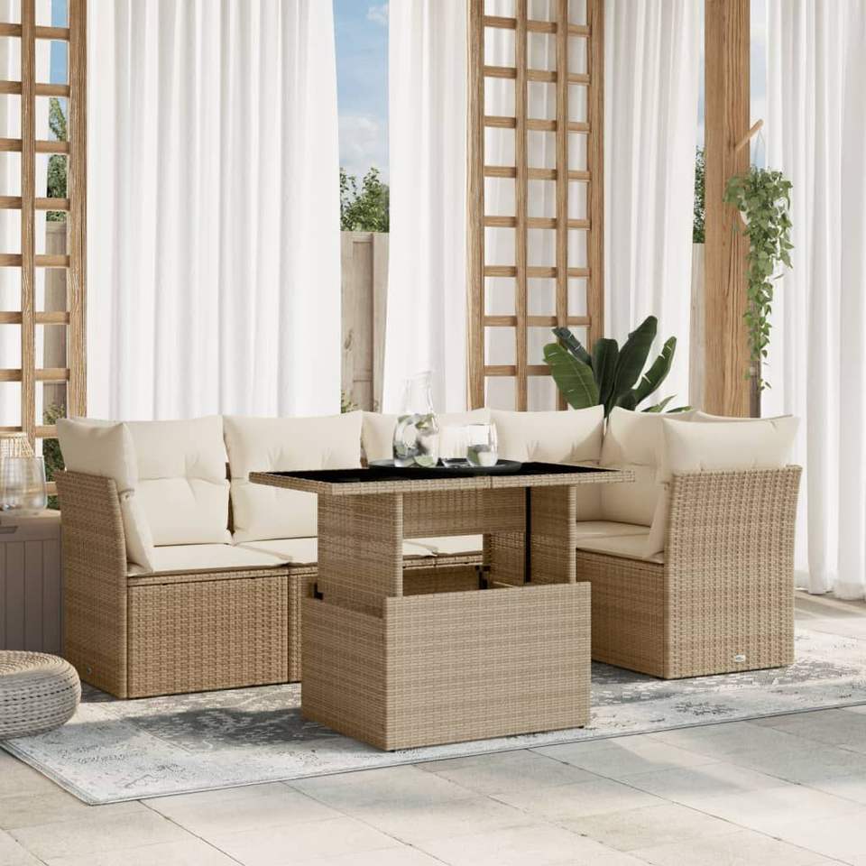 ชุดโซฟาสวนหวาย PE สีเบจขนาดกลาง ดีไซน์หรูหราสำหรับพื้นที่นั่งเล่นกลางแจ้ง