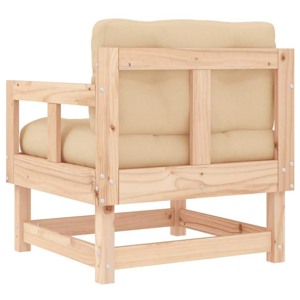 เก้าอี้สวนแบบโมดูลาร์ขนาดกลาง สีเบจ ทำจากไม้สนแท้ ดีไซน์หรูหราสำหรับนั่งพักผ่อนกลางแจ้ง