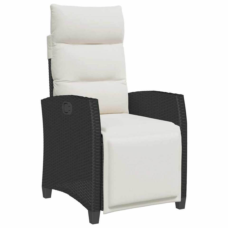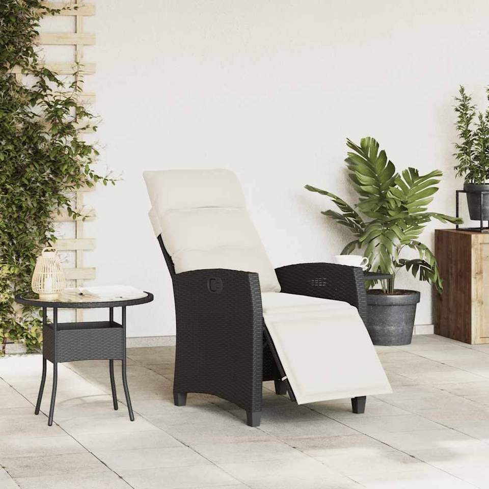 เก้าอี้พักผ่อนกลางแจ้งขนาดกลาง สีดำ ทำจากหวาย PE พร้อมโครงเหล็กเคลือบสีฝุ่น ดีไซน์หรูหรา