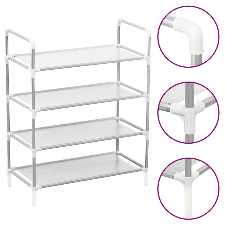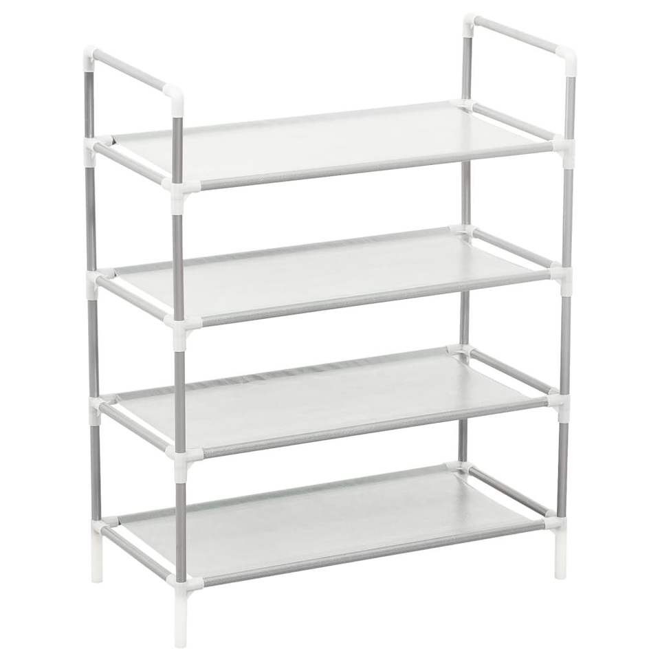 ชั้นวางรองเท้าโลหะสีเงินขนาดกลางและผ้าไม่ทอ