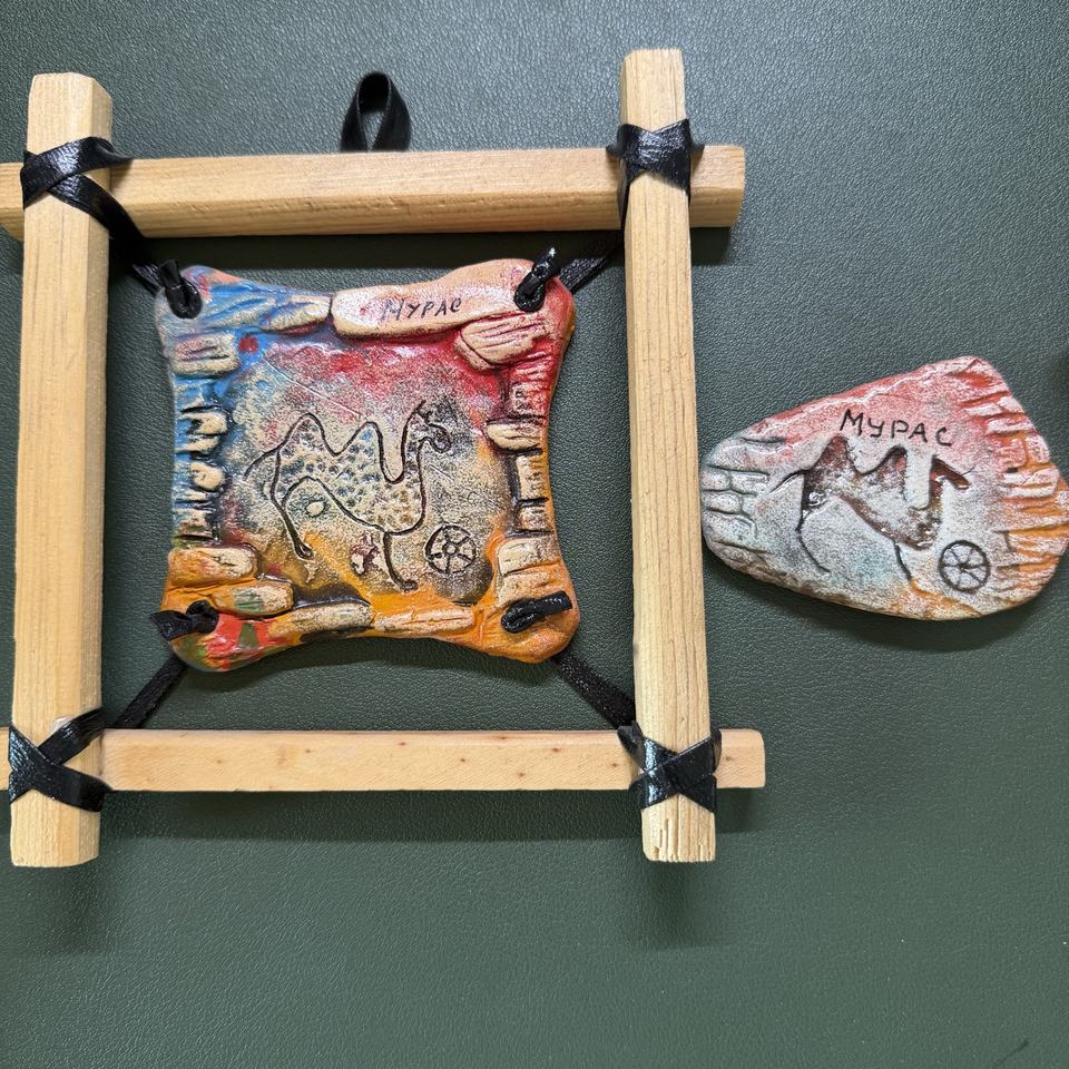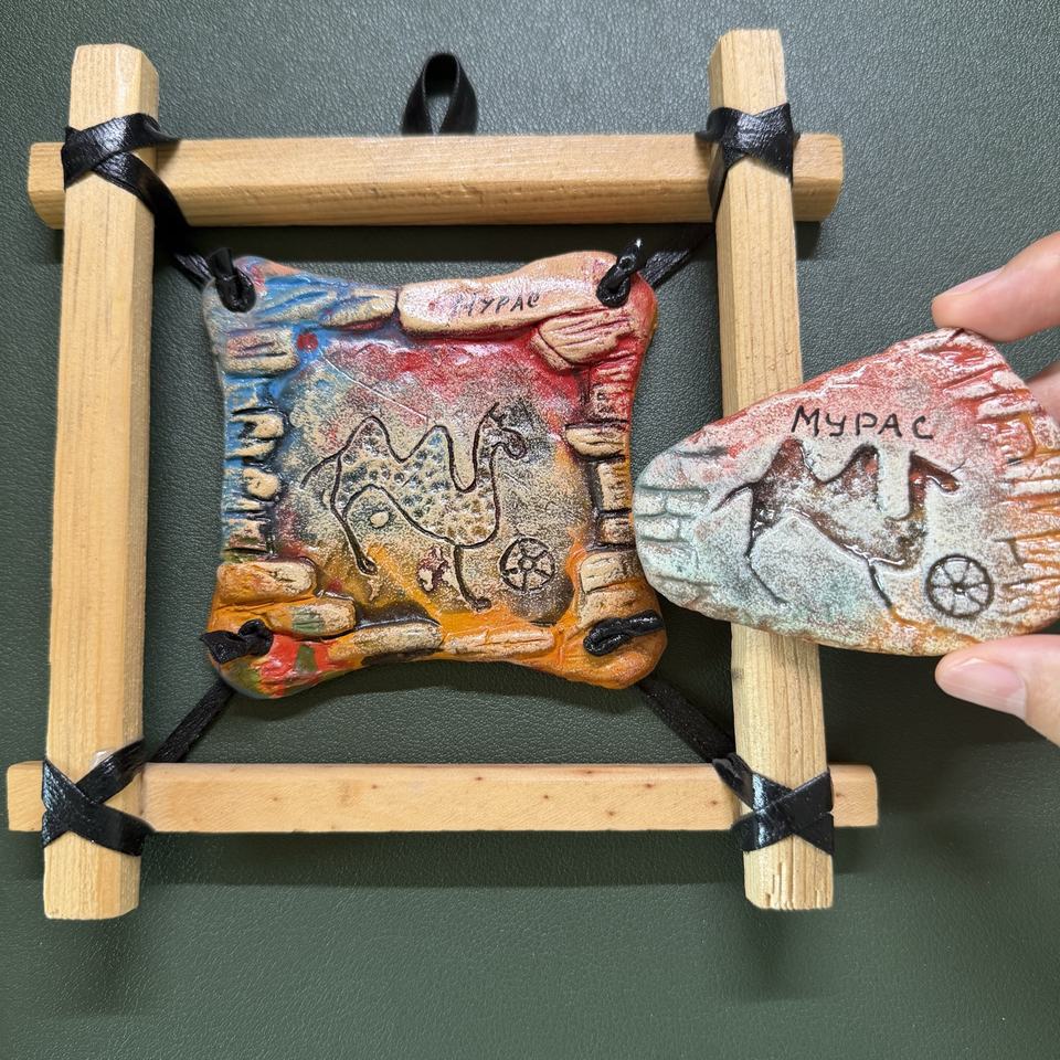 ชุดแม่เหล็กและจี้หินดินเผาแกะสลักลายโบราณทำมือขนาดกลาง - ของตกแต่งนำโชคเพื่อการบำบัดและเสริมพลังในธีมทะเลทราย