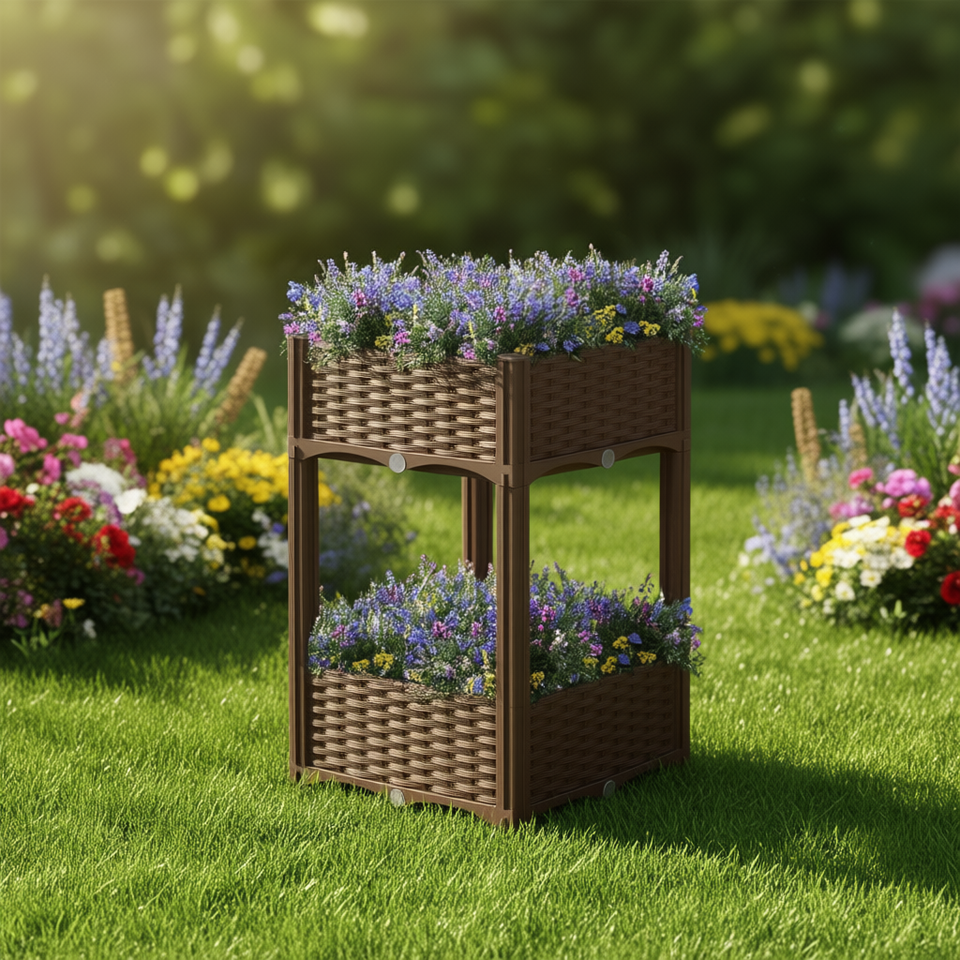 Gardenia Square Raised Bed Brown Polypropylene Planter For Garden Flower Pot Rustic Style