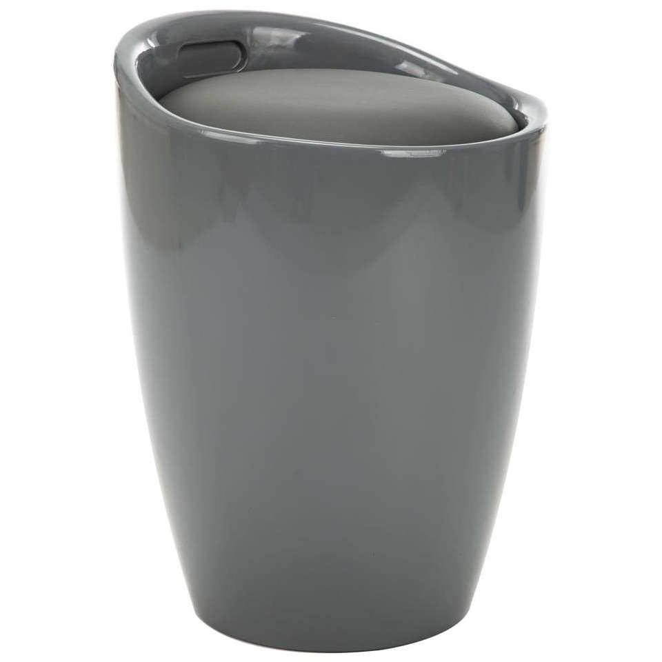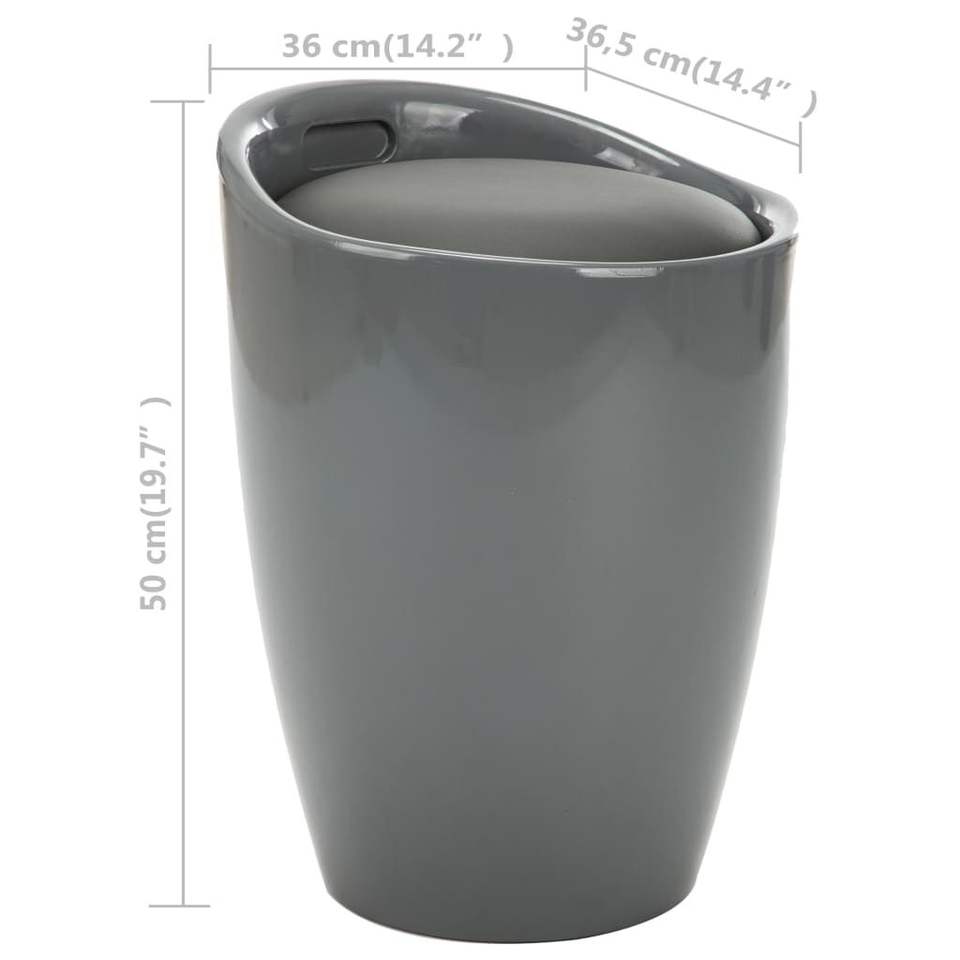 เก้าอี้สตูลหนังเทียมขนาดกลางสีเทาพร้อมพื้นที่เก็บของอเนกประสงค์