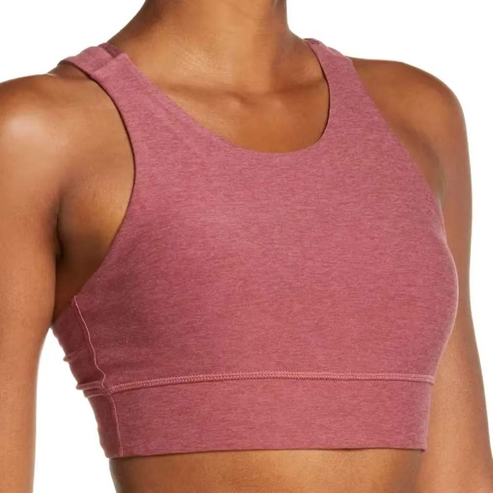 สปอร์ตบราแบบมีโครงรองรับปานกลาง ระบายอากาศได้ดี ดีไซน์เรียบง่าย ผลิตจากโพลีเอสเตอร์ 100% พร้อมแผ่นรองที่ถอดออกได้