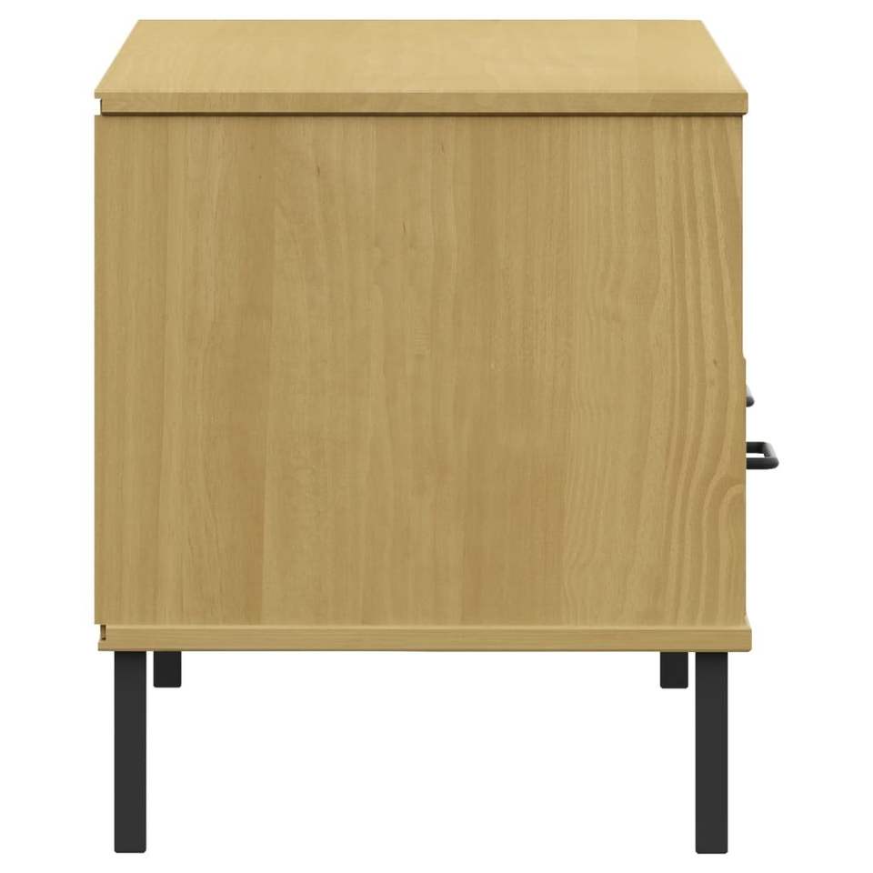 ตู้วางทีวีขนาดกลางทำจากไม้สนสีน้ำตาลเข้มและโลหะ ขาตั้งทีวีทำจากไม้สนและโลหะ