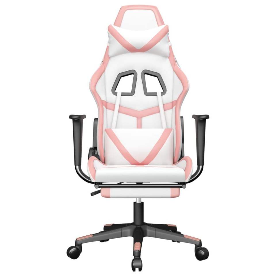 เก้าอี้เล่นเกมหนังเทียมสีขาวและชมพูขนาดกลาง