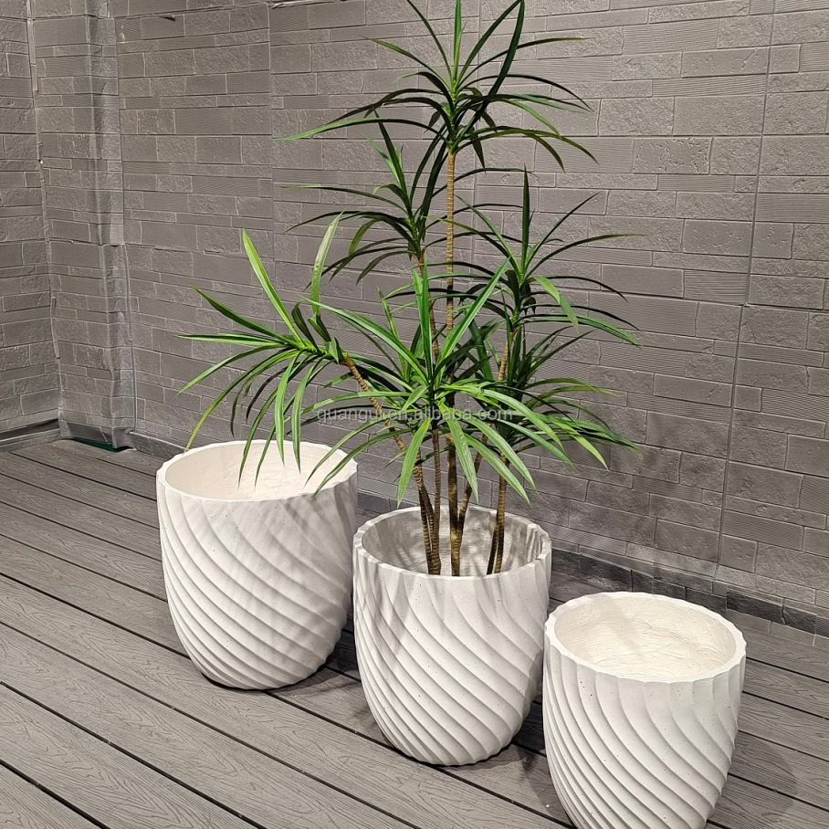 กระถางต้นไม้ลายเส้นกลาง ขนาด 15 ลิตร ดีไซน์ญี่ปุ่น-ดัตช์ ทันสมัย เป็นมิตรกับสิ่งแวดล้อม พร้อมรูระบายน้ำ ช่วยการเจริญเติบโตของพืช ทำจากไฟเบอร์เคลย์ น่ารัก