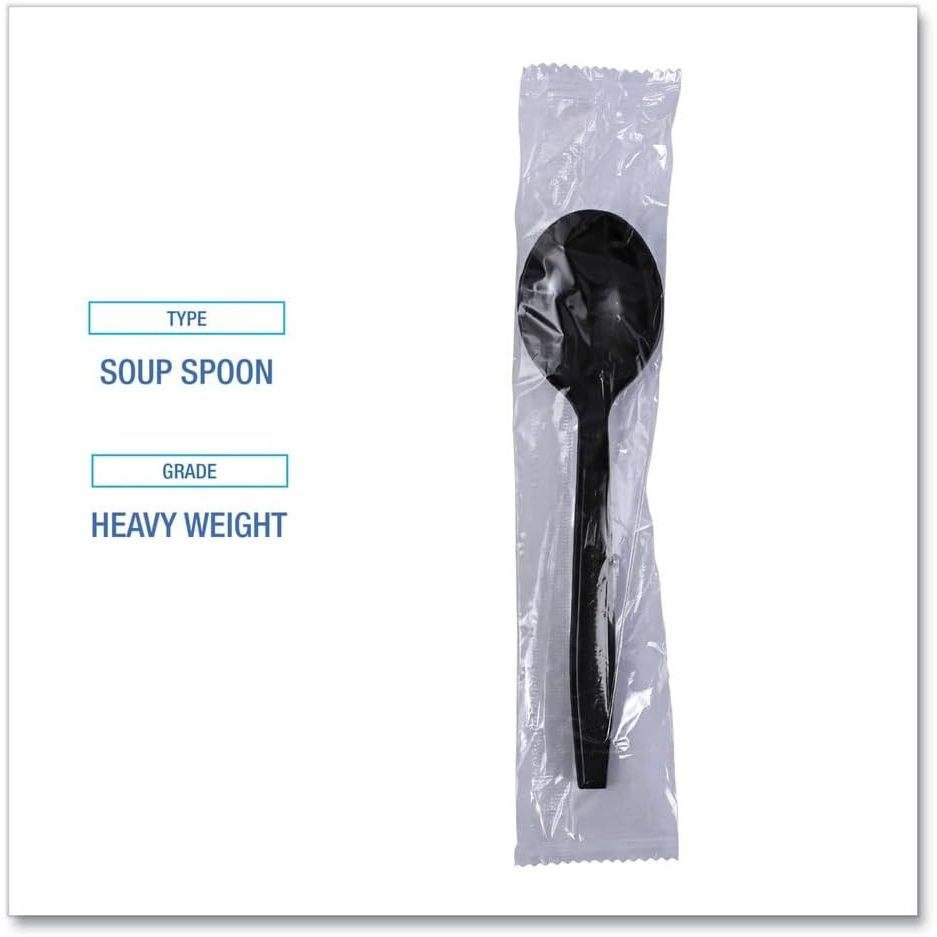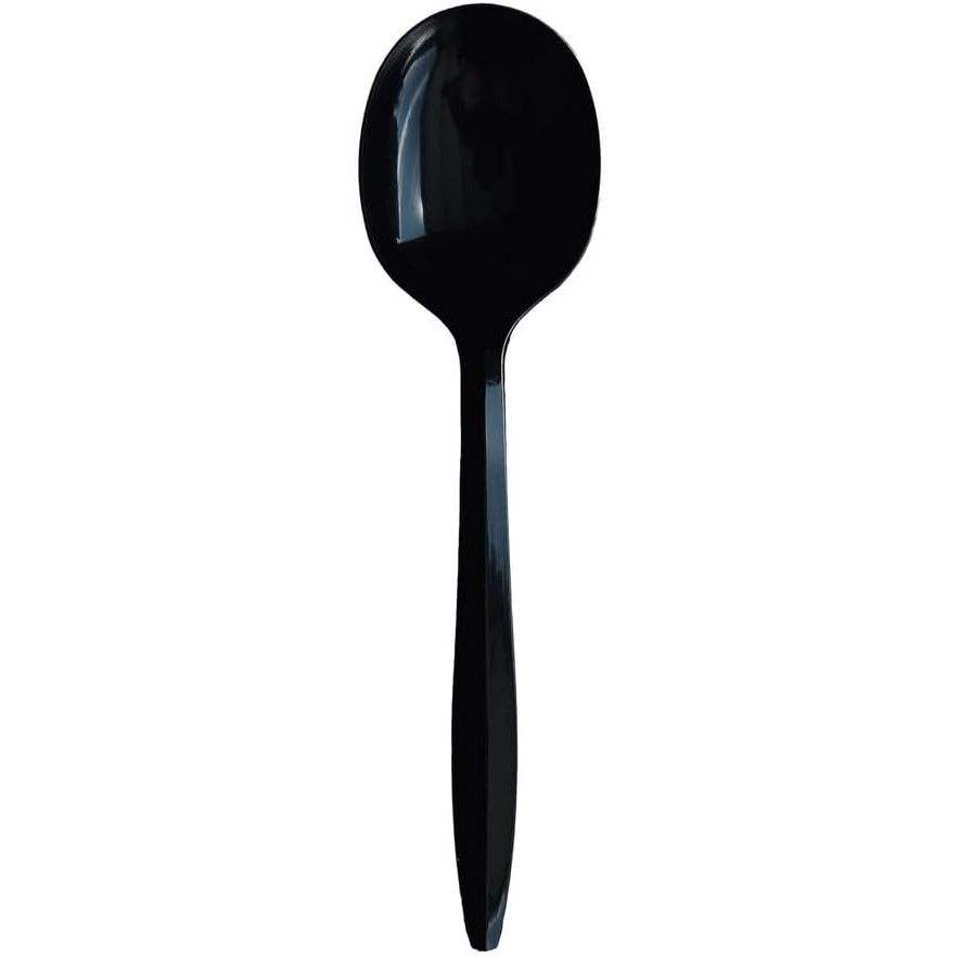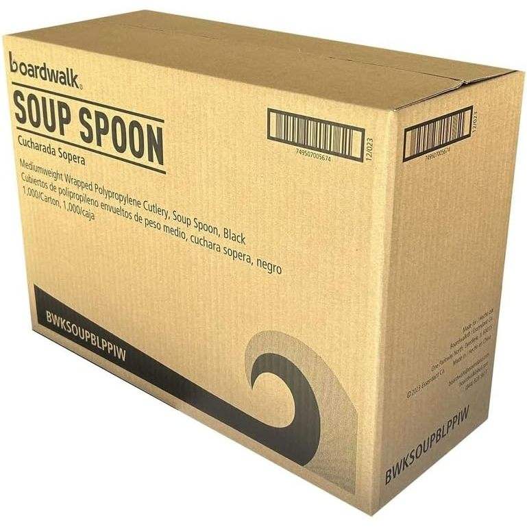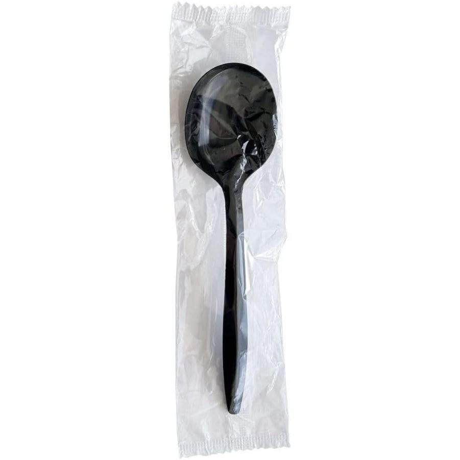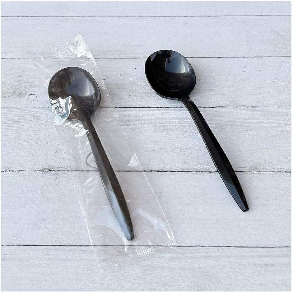 ช้อนซุปแบบใช้แล้วทิ้งหุ้มโพลีโพรพิลีนสีดำขนาดกลาง บรรจุ 1000 ชิ้น/กล่อง