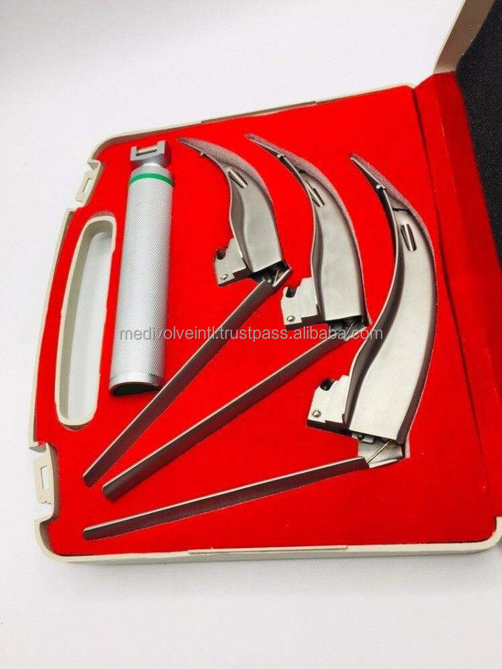 Medivolve Veterinary McCoy Laryngoscope 3 Blades Set Animal Intubation Stainless Steel Instruments CE OEM Durable Professional