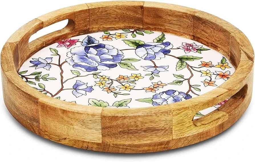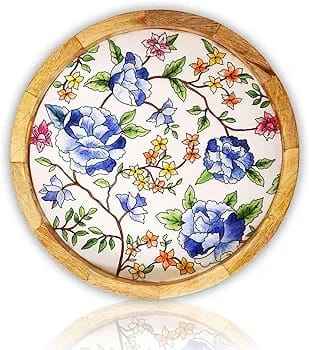 Meena Tray High-Demanding Household Eco-Friendly Snacks Tray Hand-Painted Model Design Wooden Serving Display Resin Hot Sale