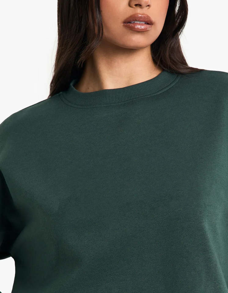 เสื้อสเวตเชิ้ตผู้หญิงคุณภาพสูงจาก Meera Impex สีเขียวล้วน คอกลม ทรงโอเวอร์ไซส์ ผ้าหนา รับสกรีนโลโก้