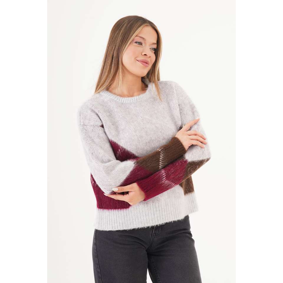 เสื้อสเวตเตอร์ถักไหมพรมสีเทาเมกะ ลายบาคลาวา สำหรับผู้หญิง ขายส่ง
