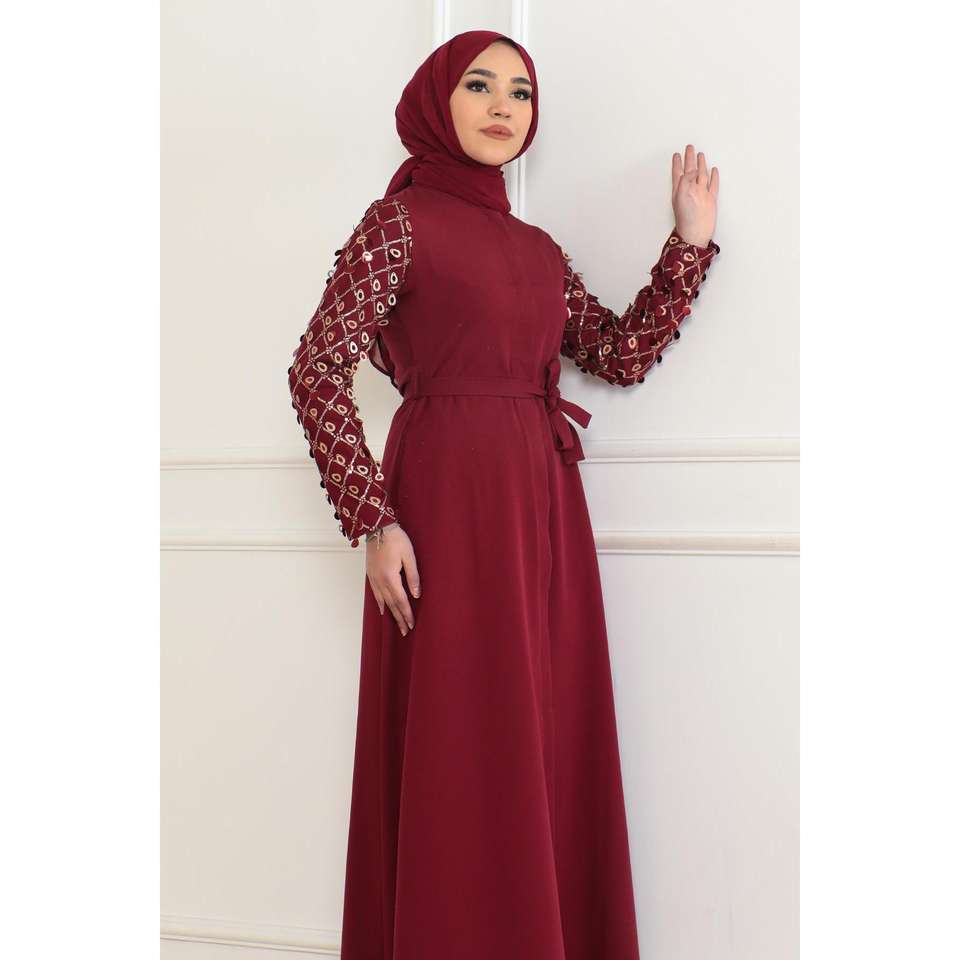 เดรสสไตล์ลำลองสีเบอร์กันดีประดับพู่ รุ่น Mega Merchant 43918 ผลิตจากโพลีเอสเตอร์ 100%