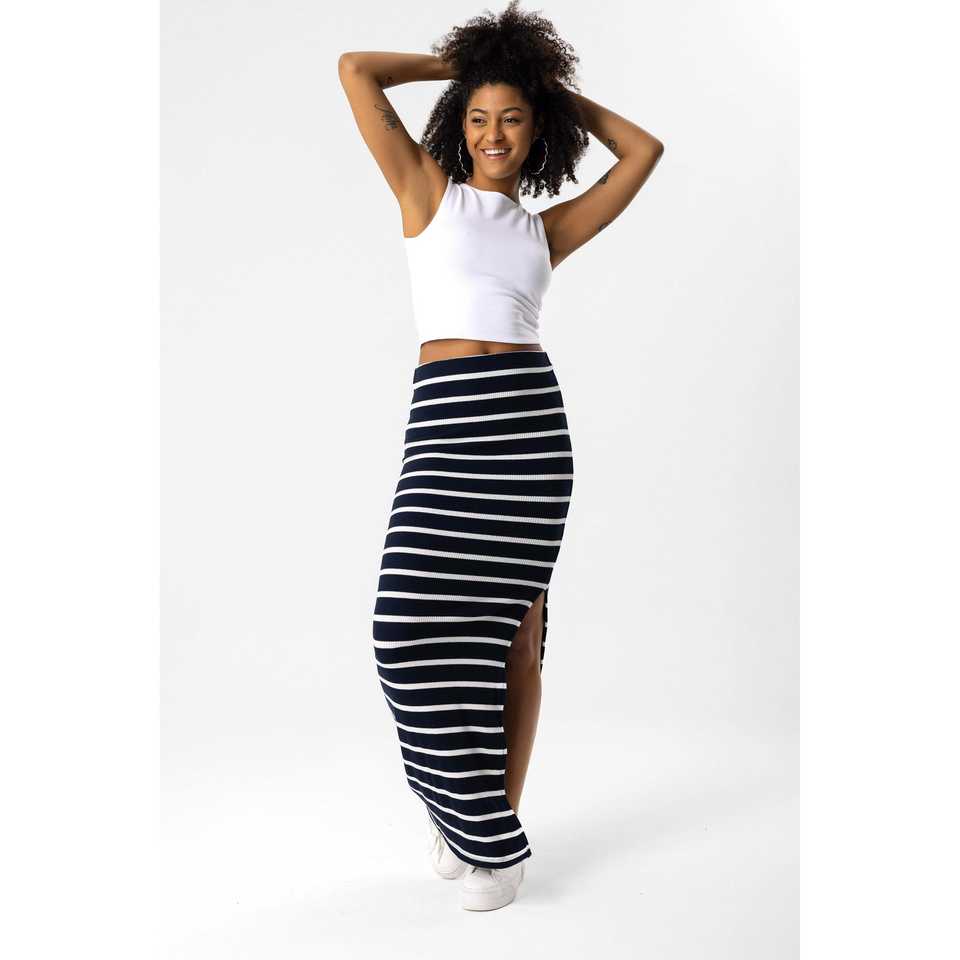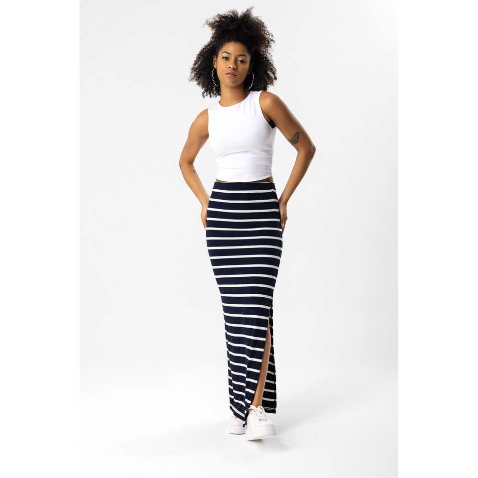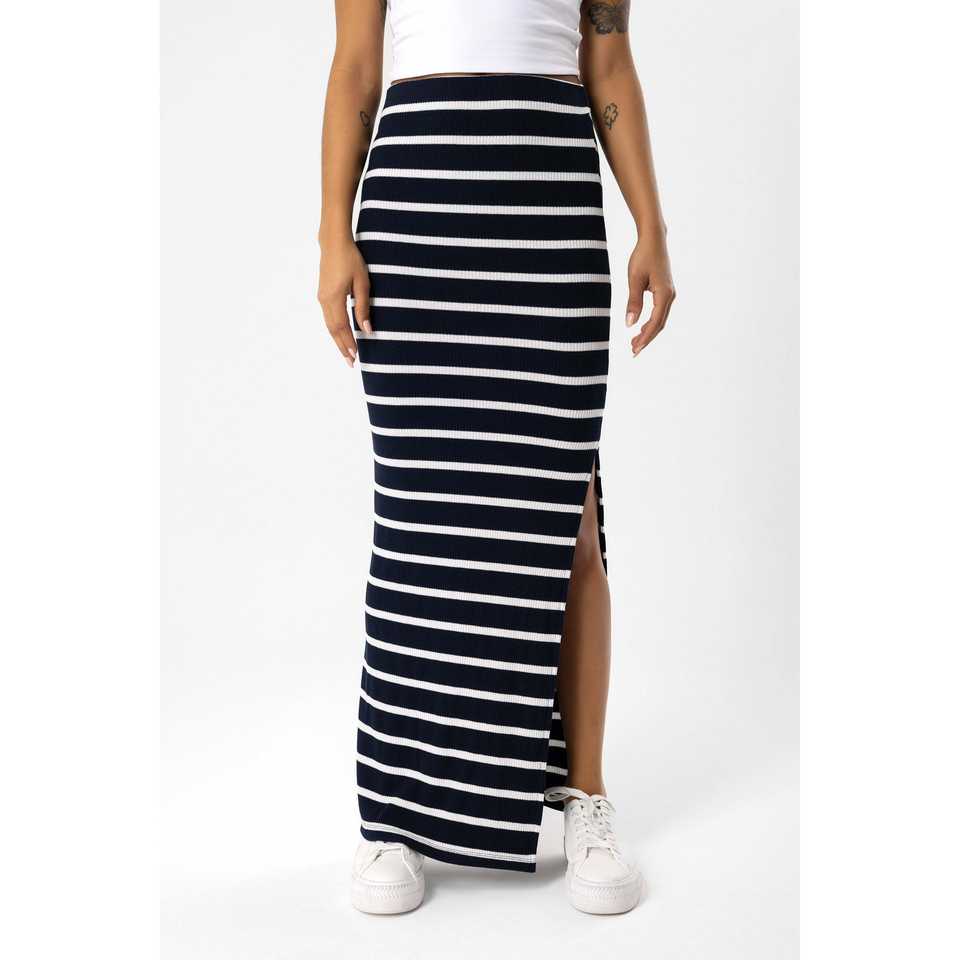 กระโปรงทรงวินเทจเอวธรรมชาติลายทางผ่าข้าง ผ้าไม่ทอ โพลีเอสเตอร์ 100% สำหรับฤดูใบไม้ร่วง ไซส์ XS รุ่น Mega Merchant