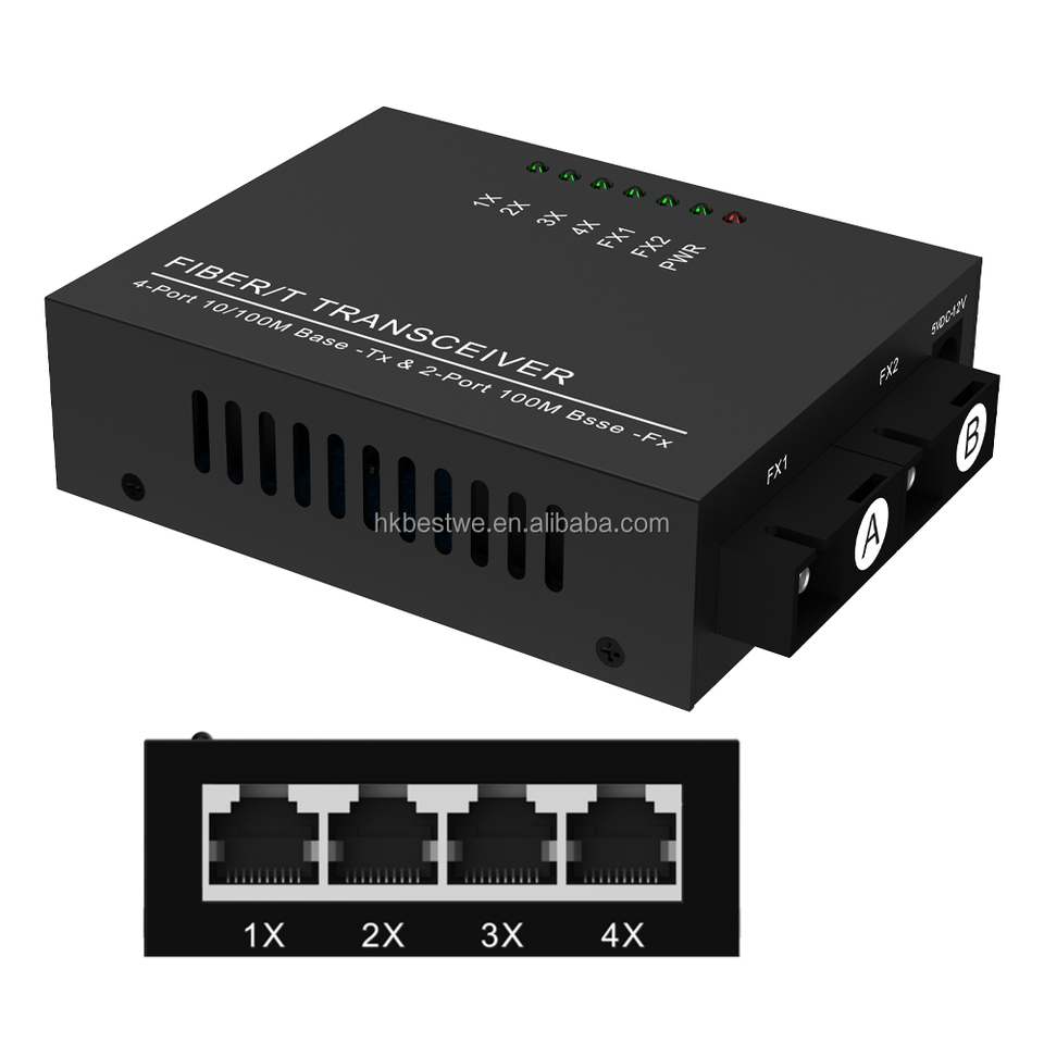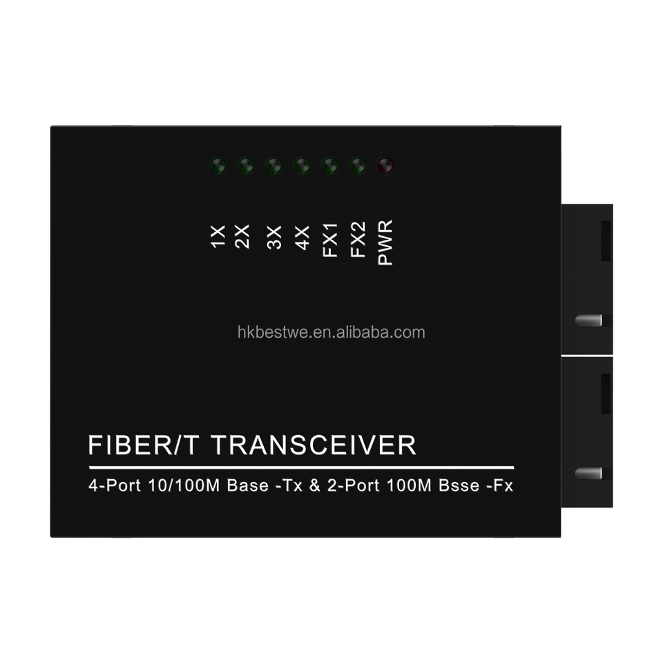 ตัวแปลงสัญญาณไฟเบอร์ออปติกแบบเมกะบิต 10/100M 2 SC 4 RJ45 อีเธอร์เน็ต ไฟเบอร์มีเดียคอนเวอร์เตอร์ SMF ซิมเพล็กซ์ SC ออปติคอลทรานซีเวอร์