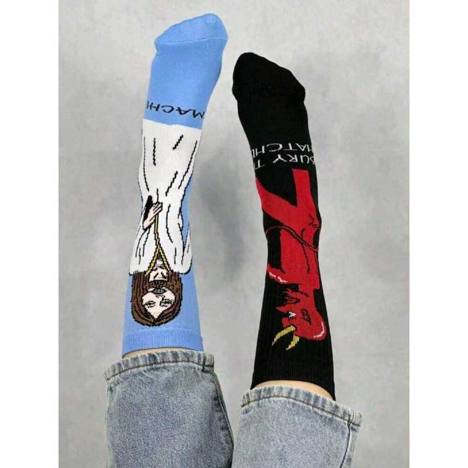 ถุงเท้าลายปักสไตล์วินเทจสองสีจาก Megan Shop 1 คู่ ยาว น้ำหนักเบา ผลิตจากไนลอน ระบายอากาศได้ดี สำหรับเด็กผู้หญิงในช่วงฤดูร้อน