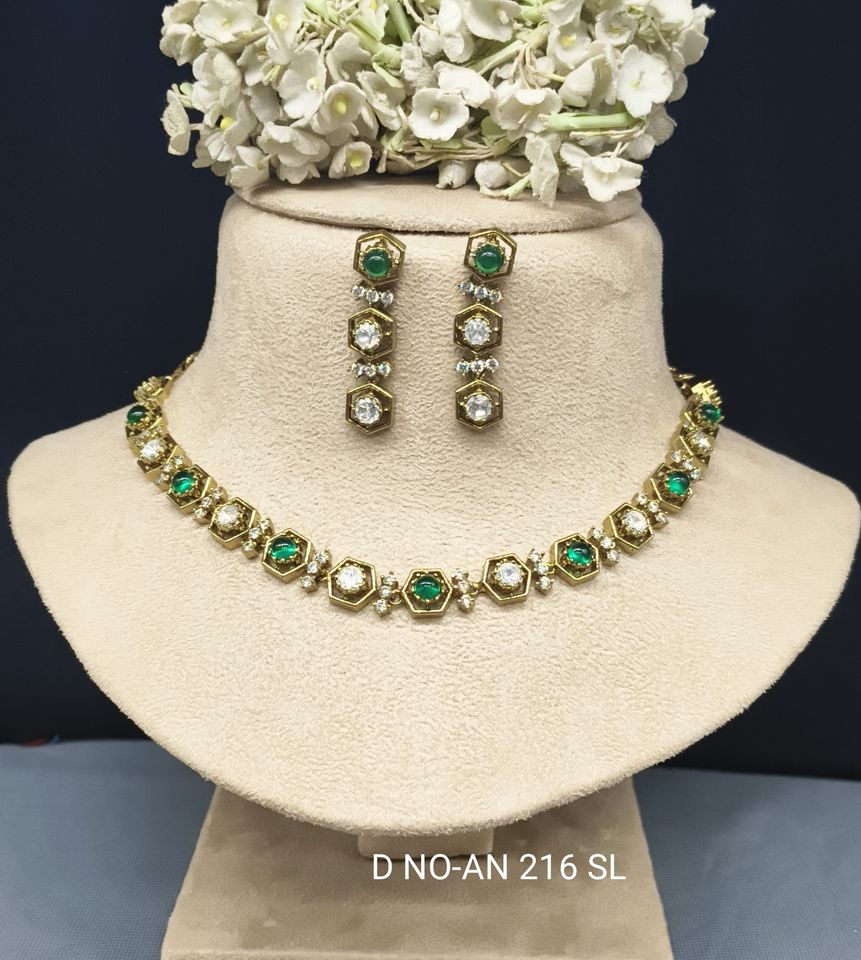 Mehandi Moissanite Kundan Necklace Set Sku AN 216 SL/D-4