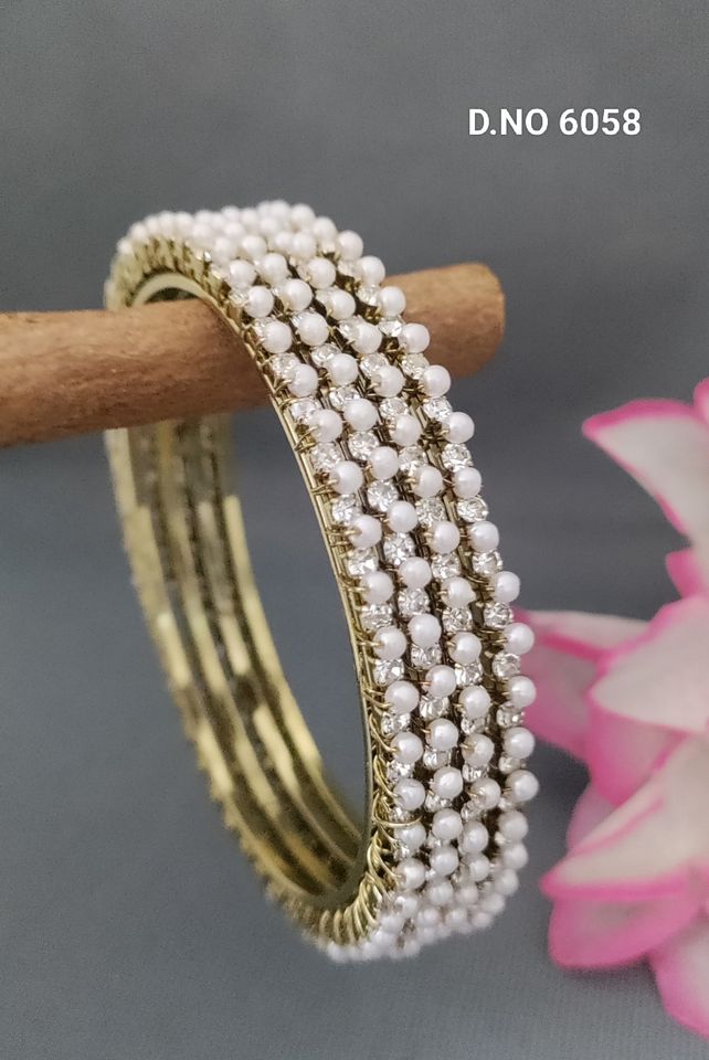 Mehandi Stone Pearl Bangles Sku 6058