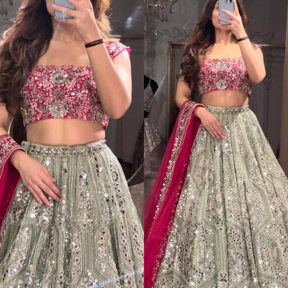 งานเฉลิมฉลองเมห์นดี งานฮัลดี ชุดเลเฮนกาโชลีผ้าจอร์เจตต์สีสวยพิเศษ แต่งลายปักเก๋ไก๋ทันสมัย สำหรับเจ้าสาวหรือผู้หญิง