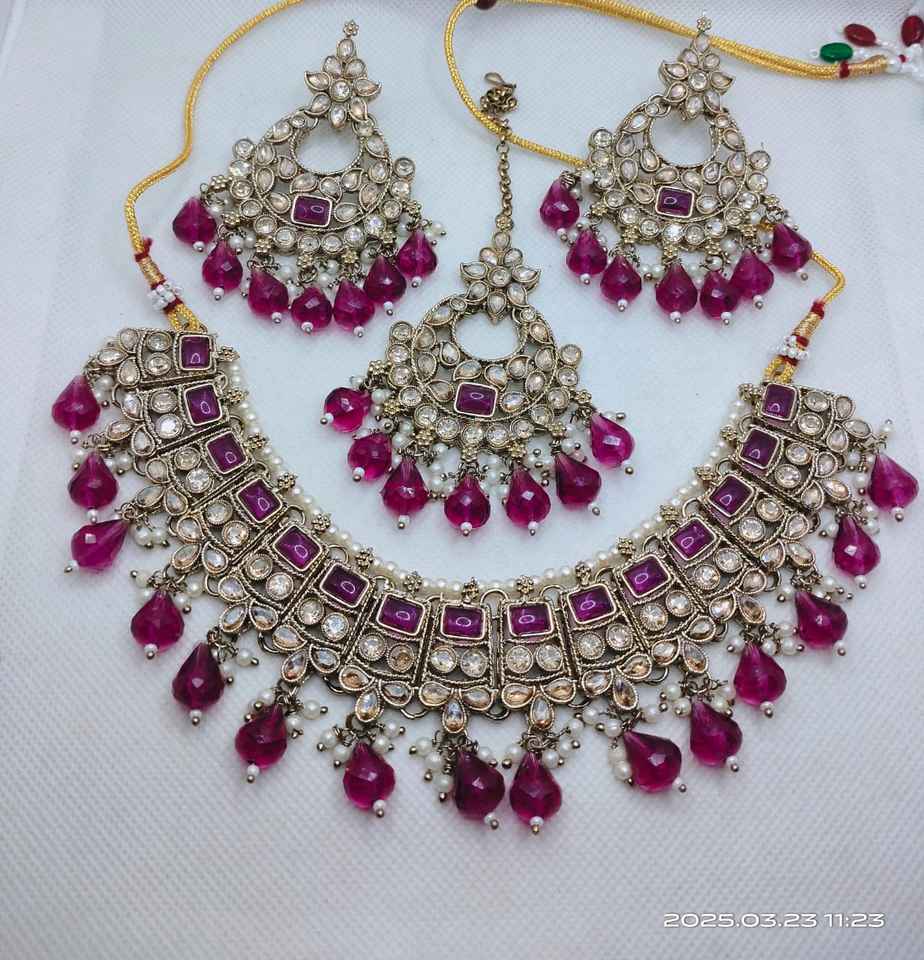 เซ็ตสร้อยคอพร้อมสีทาสำหรับผู้หญิงชุดสร้อยคอคุณภาพสูงแบบดั้งเดิมอินเดียสำหรับผู้หญิงสามารถปรับแต่งสีได้