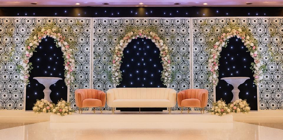 Medi & Sangeet การตั้งค่ากิจกรรมสำหรับออสเตรเลียงานแต่งงานตัดเลเซอร์ที่กำหนดเองฉากหลังเวทีการตั้งค่าฉากหลังอินเดียแบบดั้งเดิมสหราชอาณาจักร