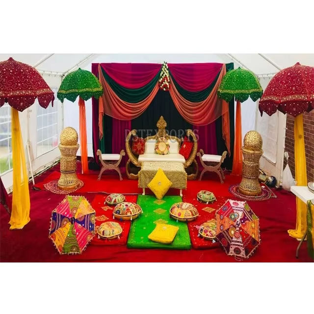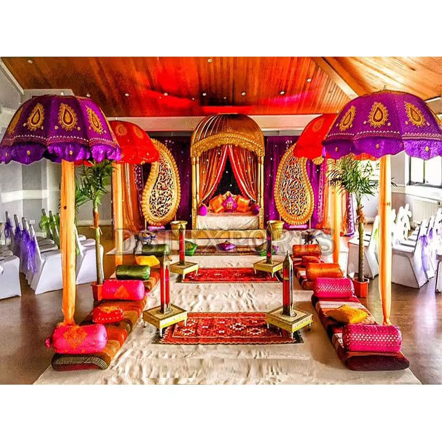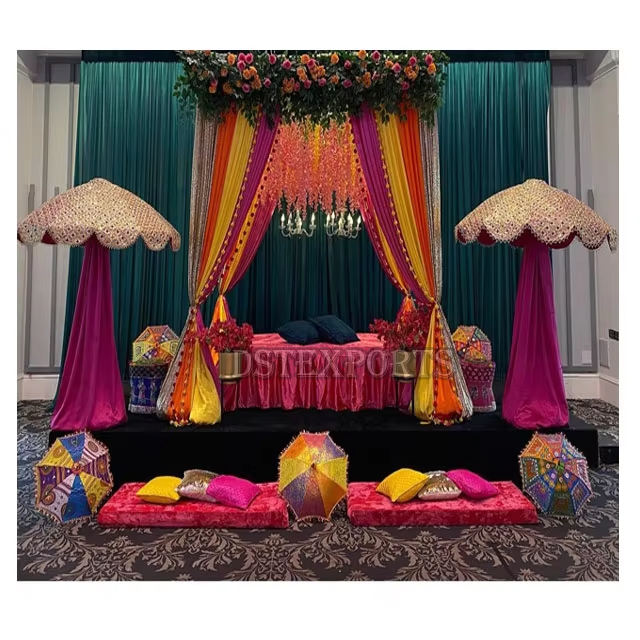 ติดตั้งด้วยการตกแต่งร่มร่มใหม่ Sangeet ร่มมุสลิมตกแต่งเวทีร่มผ้าคุณภาพสูงสำหรับงานแต่งงาน