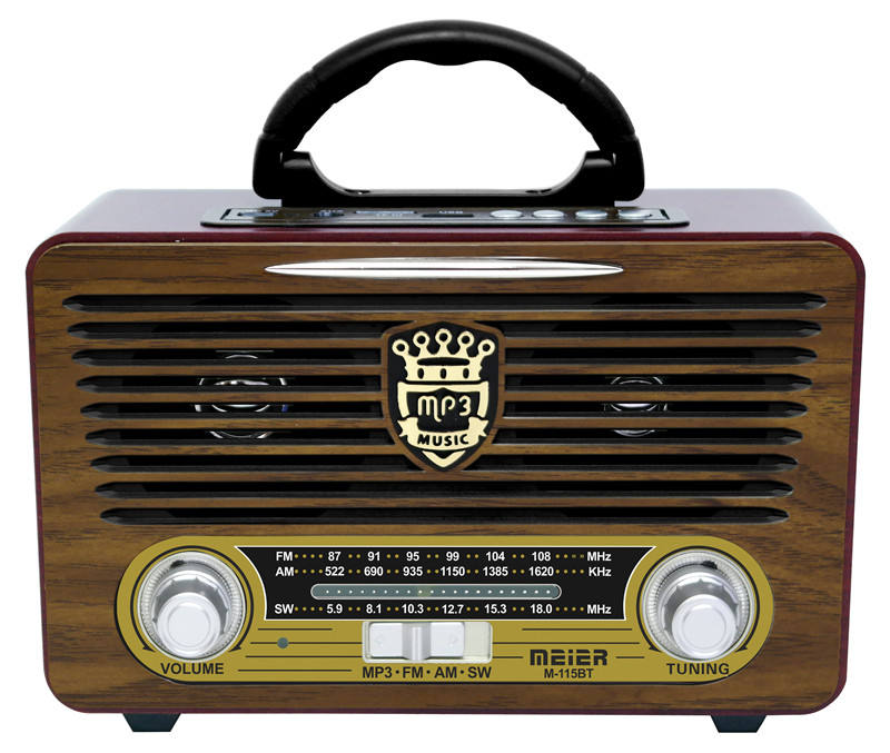 Meier M-115bt M-U115เครื่องเล่นเพลง Usb Tf Card,วิทยุ Fm Am Sw 3แบบไร้สายแนววินเทจย้อนยุคลายไม้